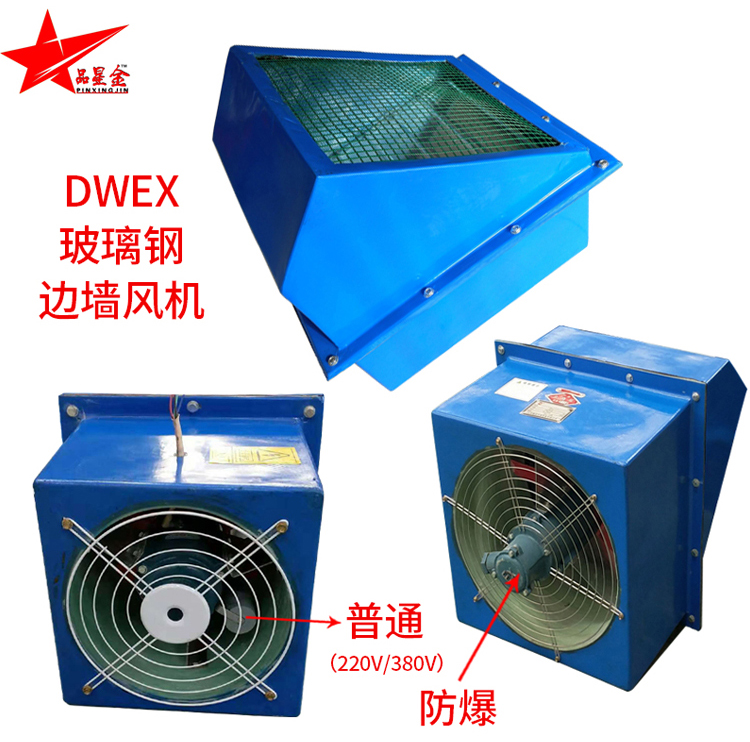 五.WSP-250D4邊墻送風機 WEX(DWEX)邊墻式軸流風機WEX配防雨罩采用的前掠型葉片、內(nèi)轉(zhuǎn)子風機電機直聯(lián)傳動,方形外殼設(shè)計可以方便地安裝在混凝土墻、磚墻或輕鋼壓型墻板上,方形防雨罩結(jié)構(gòu)牢固,外形美觀。具有噪聲低、風量大、運行可靠、性能參數(shù)范圍廣、安裝簡便等特點,廣泛應用于廠礦企業(yè)車間和民用、商用建筑工程的邊墻壁式通風換氣。根據(jù)輸送介質(zhì)的要求,可制成防腐、防爆型防爆邊墻排風機