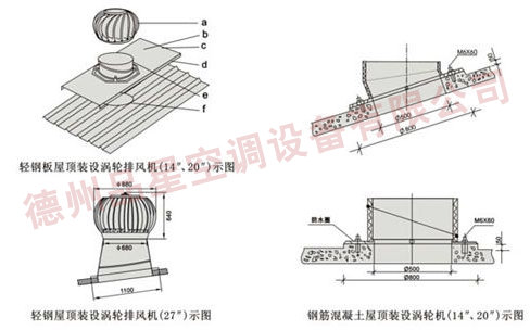 2、DWT-Ⅳ(無電機(jī))屋頂渦輪排風(fēng)機(jī)屋面安裝示圖說明