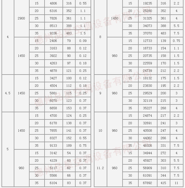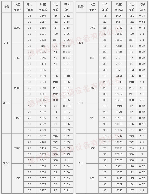 三、T35型風(fēng)機(jī)性能參數(shù)表