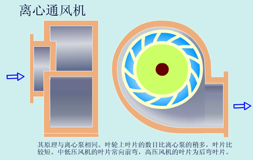 1、離心風(fēng)機(jī),是氣流軸向進(jìn)入風(fēng)機(jī)的葉輪后主要沿徑向流動(dòng)。這類風(fēng)機(jī)根據(jù)離心作用的原理制成,產(chǎn)品包括離心通風(fēng)機(jī)、離心鼓風(fēng)機(jī)和離心壓縮機(jī)。